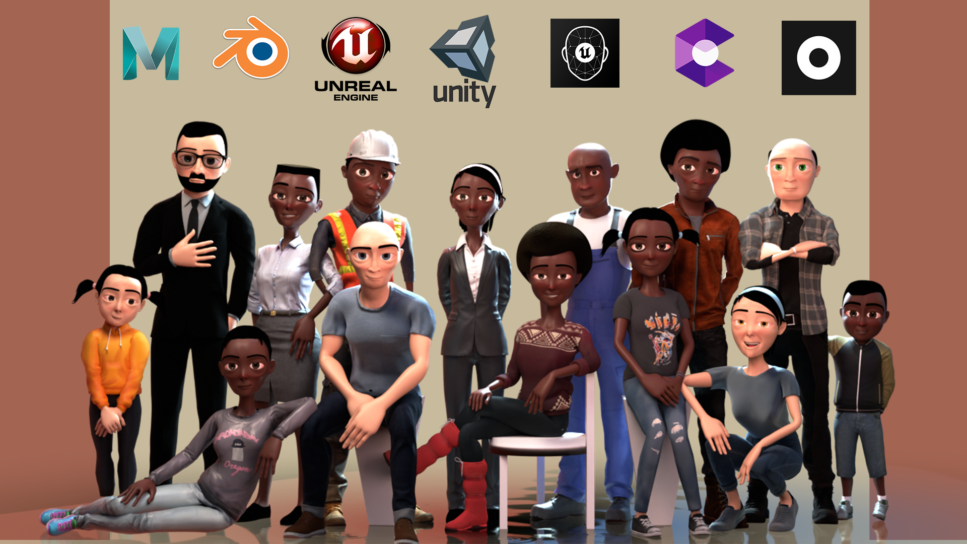 Background characters for blender and maya with rigged faces.