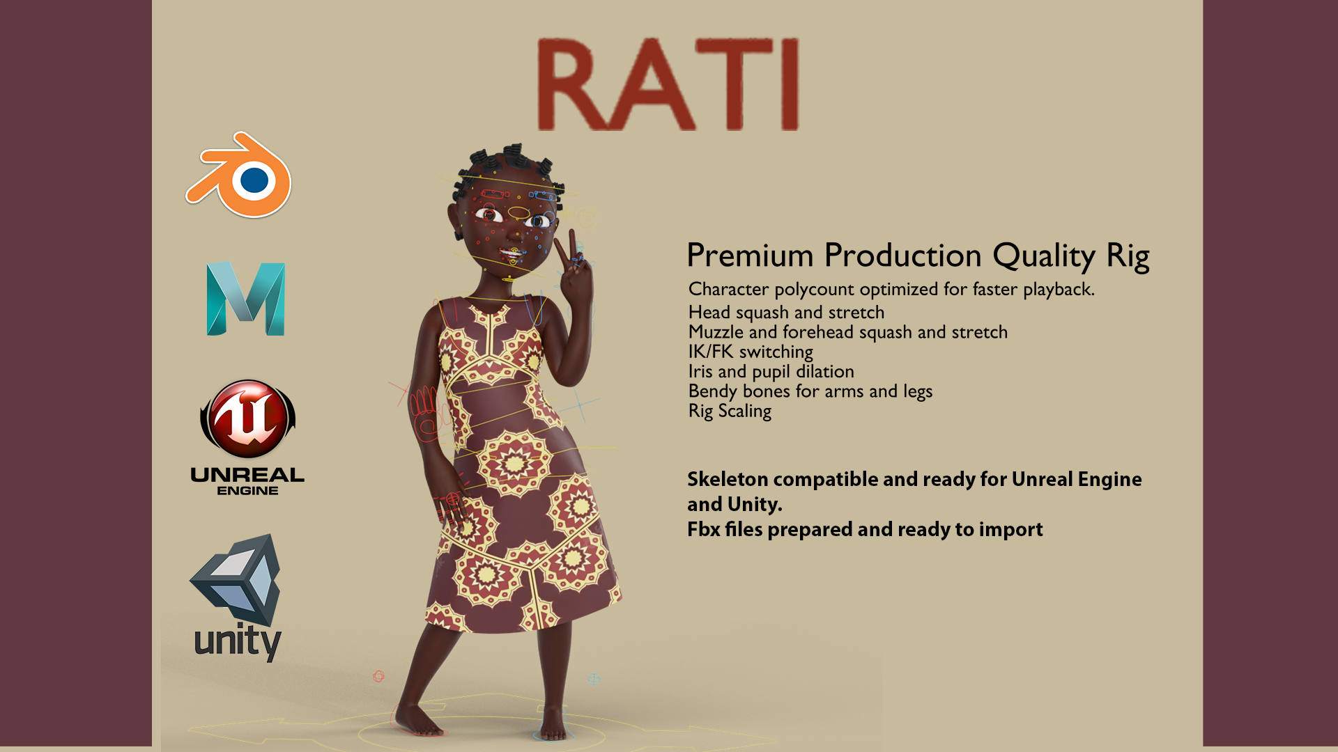 Rati rig: Premium Production quality rig for Maya and Blender users.